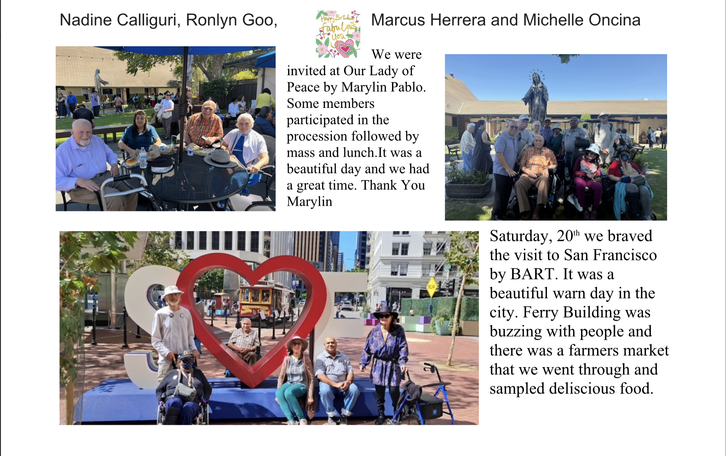 Handicapables ProgramThe Handicapables Program of Catholic Charities is for adults and older adults with disabilities and provides opportunities for socialization within a group with common interests and concerns. Members enjoy a bi-monthly gathering that can include an optional Mass at a Parish within the Diocese of San Jose, lunch, group discussions, entertainment, and/or speakers. In addition, group outings are planned so members may attend cultural events, educational programs, and other recreational activities.